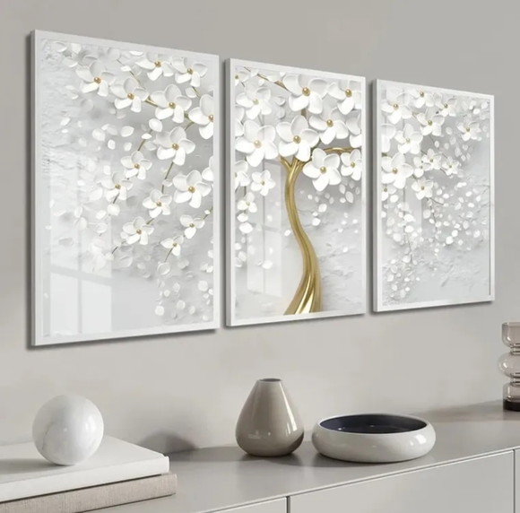 Kit3 - 90x60 cada quadro - Tamanho Total com Moldura 1.95x0.65 (LxA) Ideal para sofás de até 3m