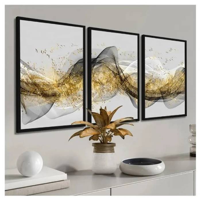 Kit3 - 90x60 cada quadro - Tamanho Total com Moldura 1.95x0.65 (LxA) Ideal para sofás de até 3m